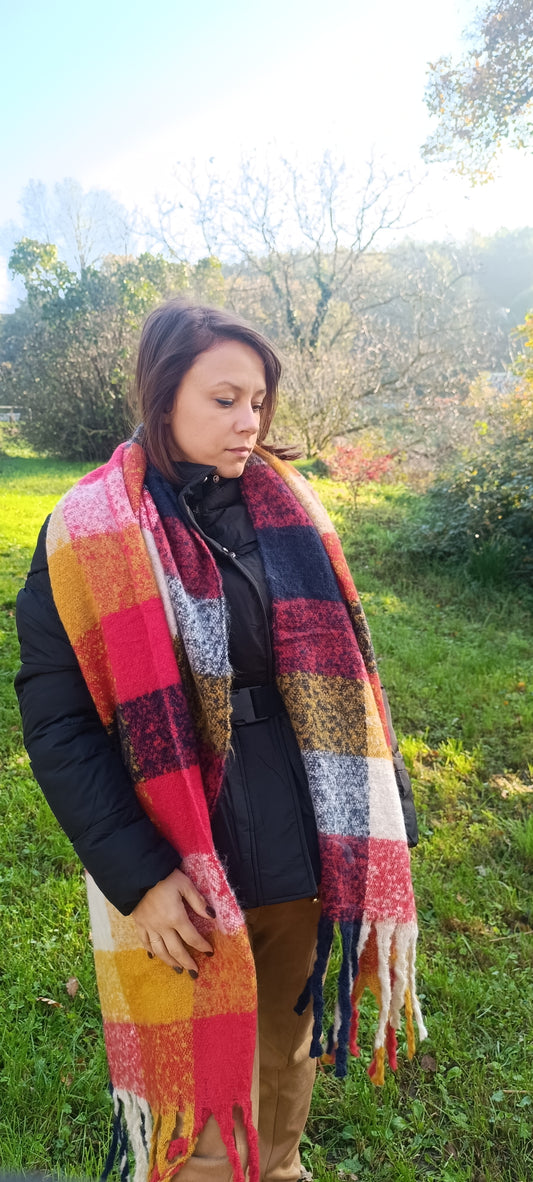 Echarpe douce a carreaux grand format
