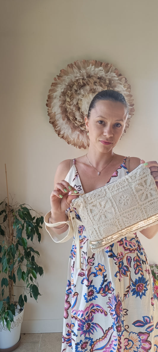 Pochette écru 100% coton bandouliére amovible