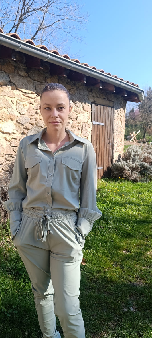 Ensemble chemise et jogging toile vert pistache