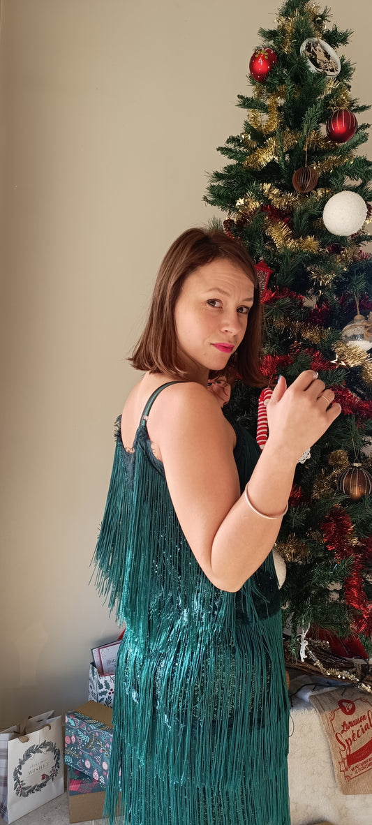 Robe a sequin vert sapin Fêtes 2024