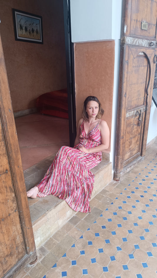 Robe longue rouge satinée a bretelles réglables