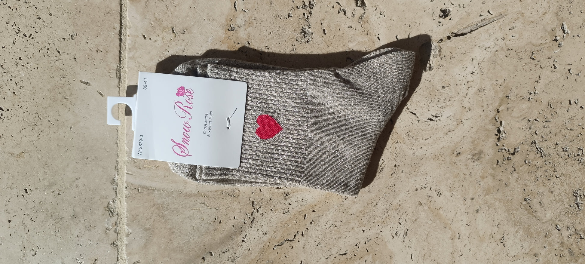 C'est LA tendance de l'année, les jolies chaussettes brodées cœur avec maille satiné ! Mi-haute, extensible, elles s'adaptent à tous les jolis pieds.