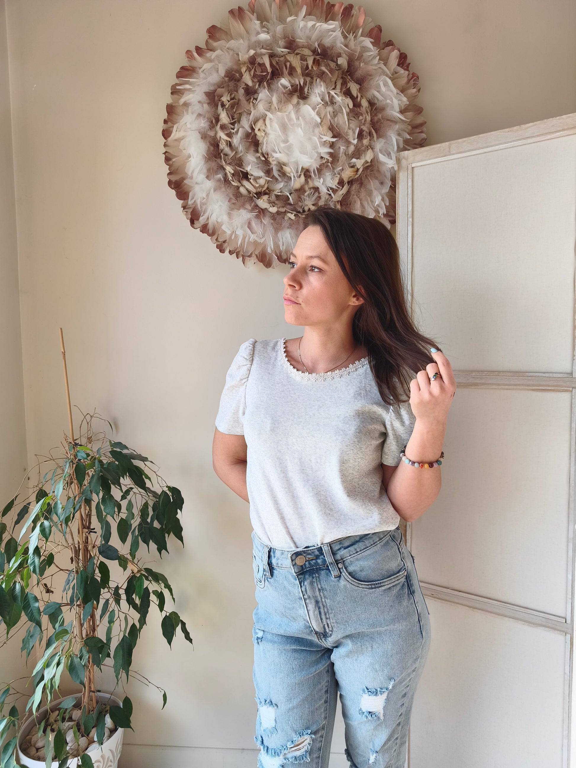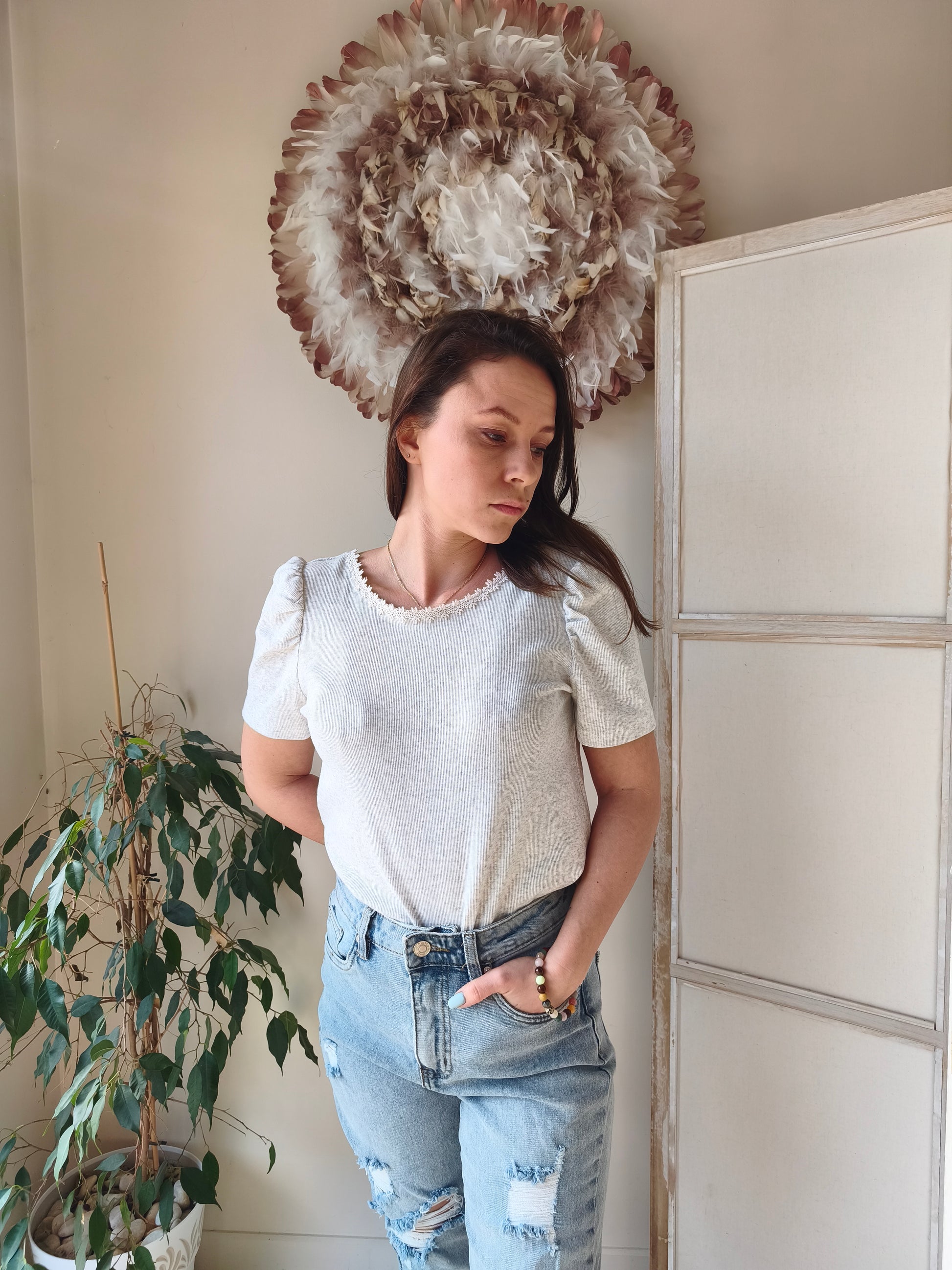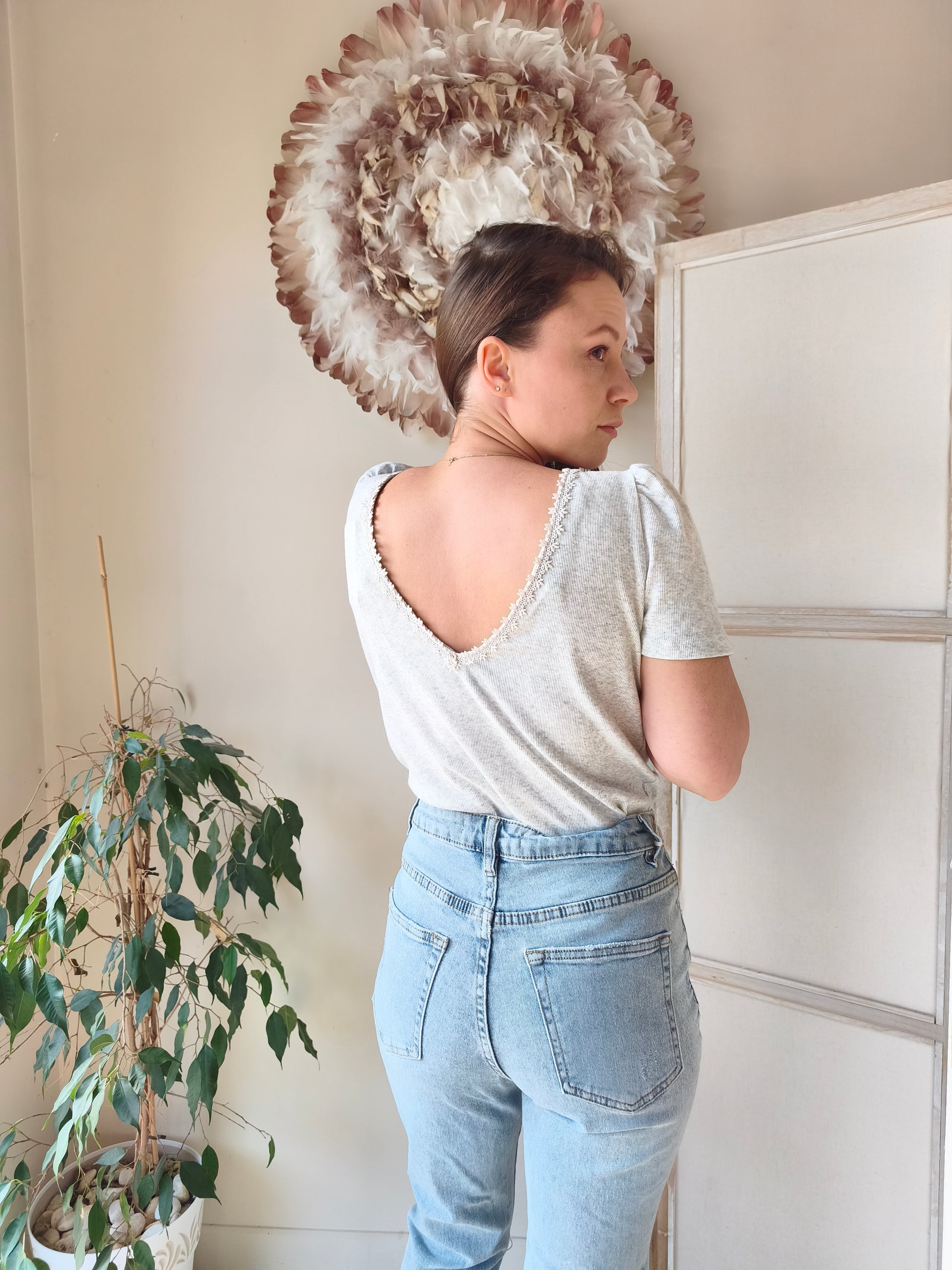Le joli tee-shirt classique et élégant à avoir absolument ! Col bateau devant, petits détails brodés, et col V plongeant au dos (réversible si tu préfères un décolleté devant sachant qu'il sera avec une ouverture large). Facile à associer , le tee-shirt dos nu est un allié de tous les styles : rock, classique, décontracté, ou élégant 👌🏽